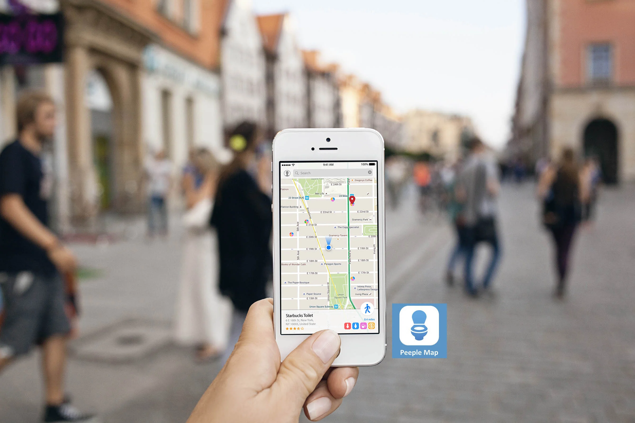Peeple Map is a navigation app that helps people finding a closest toilet in any emergency situation. Our goal is to provide a simple and intuitive way to find a nearby restroom for different groups of people.